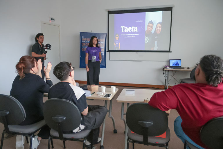 A Lília desenvolve joias inteligentes com GPS, câmera e áudio que, ao serem acionadas, enviam localização e provas em tempo real para contatos de emergência, protegendo mulheres contra violência e gerando receita pela venda online dos acessórios.