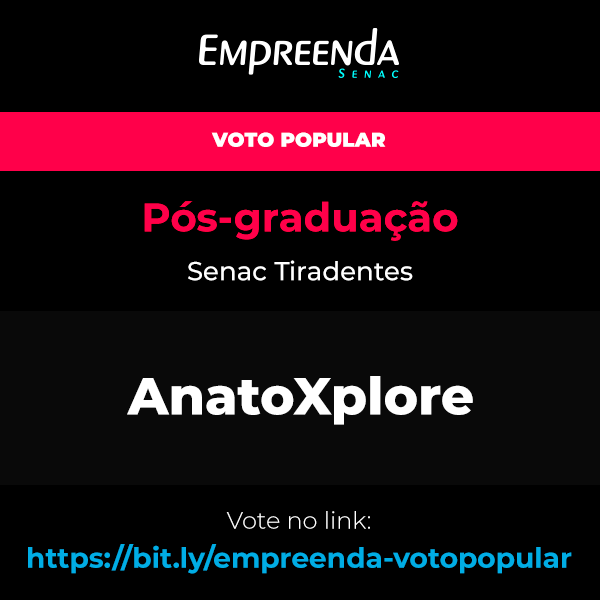 Equipe: AnatoXplore Unidade: Senac Tiradentes Integrante(s): Enrico Bento Cristovão VOTAR NESTA EQUIPE E VOCÊ PODE TAMBÉM: - Copiar link da votação para compartilhar - Compartilhar imagem desta equipe na sua rede social favorita